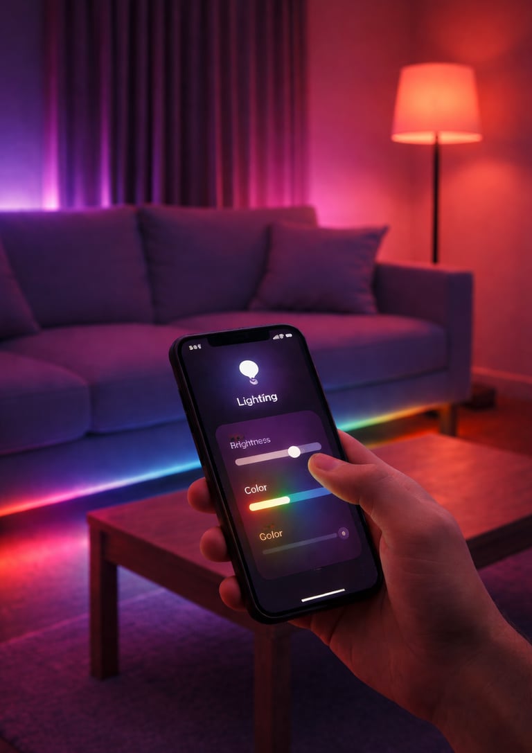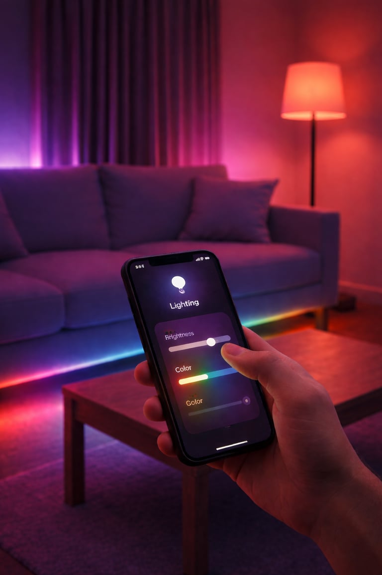 Diseñamos sistemas de iluminación que se adaptan a tu ritmo de vida. Mediante el uso de dimmers y controladores inteligentes, podés crear ambientes personalizados para cada momento: "Modo Cine", "Cena Romántica" o "Simulación de Presencia" cuando no estás en casa. Todo controlable desde interruptores físicos modernos, comandos de voz o automatizaciones por sensores.