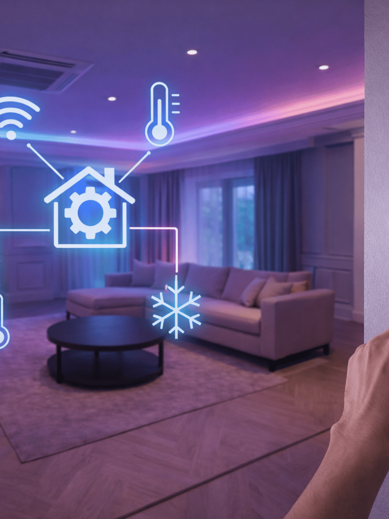 Tu hogar se anticipa a tu llegada. Gracias a la geolocalización y el análisis de tus rutinas, el sistema prepara la temperatura ideal justo antes de que entres, evitando el consumo innecesario mientras no estás. Mediante sensores de precisión, el clima se ajusta solo según la ocupación de cada ambiente o si una ventana queda abierta, logrando el equilibrio perfecto entre confort máximo y ahorro energético real.